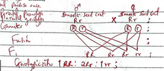 3 (a) In a certain variety of pea plants, the allele for smooth seed coat is dominant over the allele for wrinkled seed coat. Using letter R to represent the allele for smooth seed coat, determine: