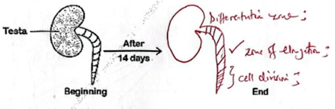 (b) (i) On the space provided on the right side of the diagram, sketch the appearance of the marks on the root after 14 days. (1 mark)