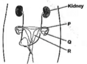 (c) (i) Name the hormone secreted in the part labelled Q. (1 mark)