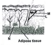 (b) Explain the roles played by the parts labelled N and L in thermoregulation during hot weather conditions.