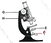 (b) Label on the diagram with a letter, F, the part that reflects light to the specimen. (1 mark)