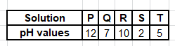 NaCl dissociates in water to form \(Na^{+}\) and \(Cl^{−}\) . Aqueous sodium chloride is neutral hence it is likely to be Q which has a PH of 7