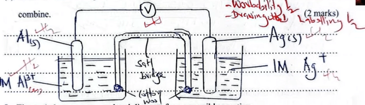 (b) Draw a labelled diagram for an electrochemical cell formed when half-cell I and IV combine