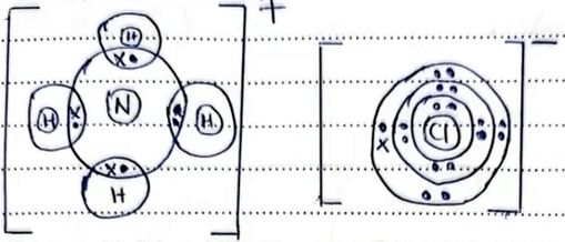 5. (a) Using dots (•) and crosses (×) to represent electrons, draw the structure of ammonium chloride. (H = 1; N = 7; Cl = 17) (2 marks)