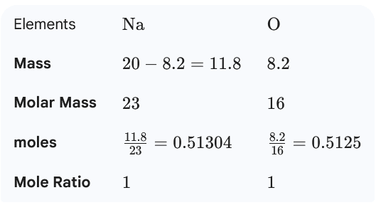 (a) empirical formula of the compound (O=16.0,Na=23.0). (2 marks)